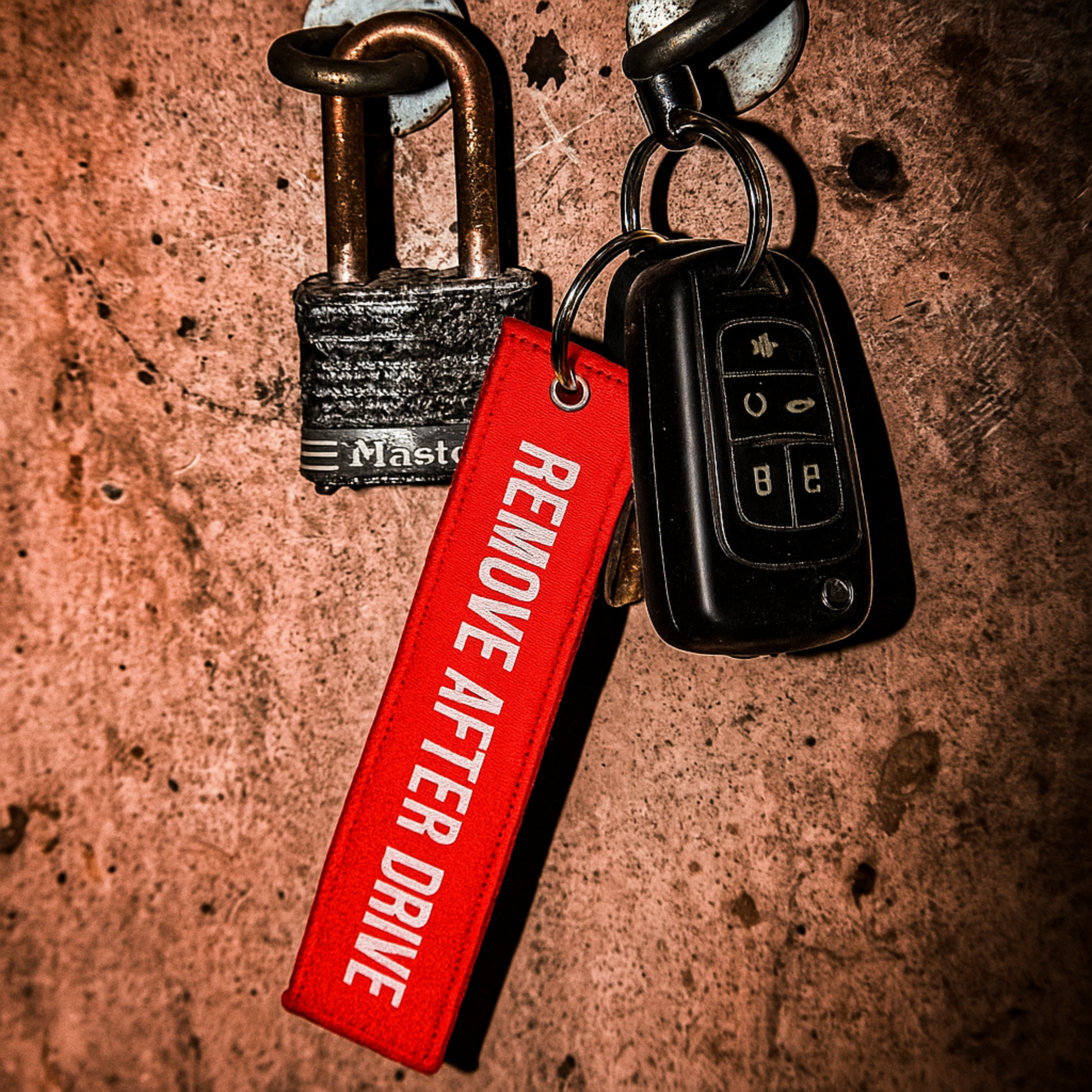 Never leave your keys behind again: The Remove After Drive keychain.